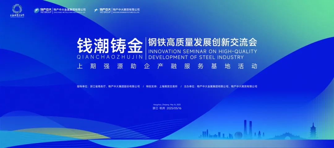 2025年5月16日,由浙江省商務廳、物產中大集團指導,上海期貨交易所特別支持,物產中大金屬與物產中大期貨主辦的“錢潮鑄金——上期強源助企產融服務基地活動之鋼鐵高質量發展創新交流會”在杭州成功舉行。會議匯聚上海期貨交易所、浙江省商務廳、五十余家產業鏈龍頭企業以及研究機構代表,圍繞鋼鐵行業產融結合創新路徑展開深度研討。