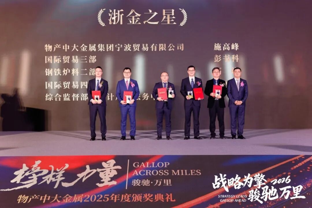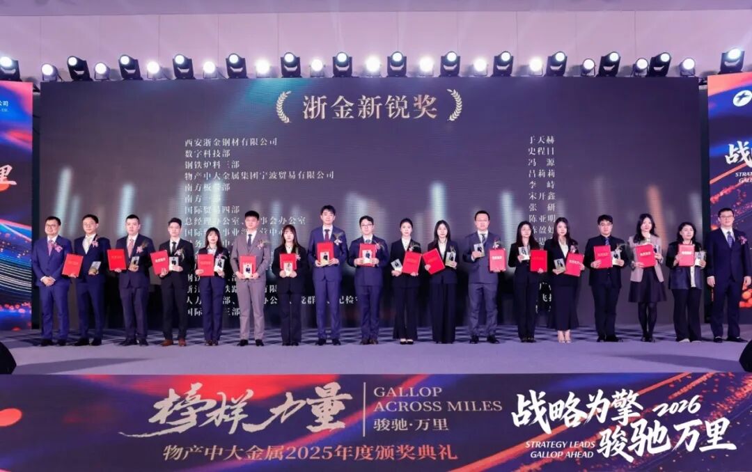 2月10日,物產中大金屬召開2026年度經營工作會議暨2025年度“榜樣力量”頒獎典禮。物產中大集團副總裁、黨委委員李兢出席會議;公司董事長、黨委書記陳亦軍作主題報告;公司總經理、副董事長、黨委副書記張華良主持會議;集團供應鏈一部總經理胡云龍、公司領導班子、各部門責任人及骨干員工、2025年度先進個人、職工代表、工會會員代表參加會議。